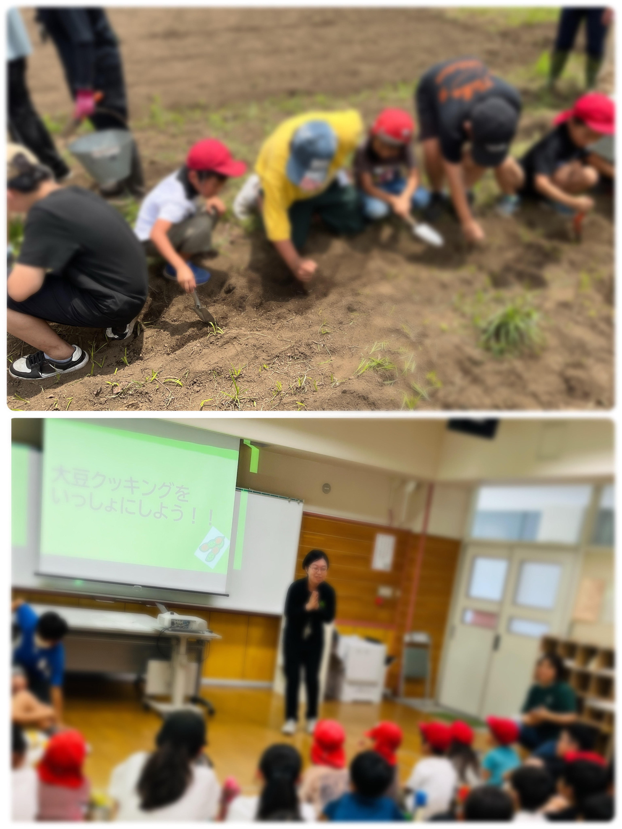 今年度の上荻野小学校との大豆プロジェクトの活動を、研究授業として、市内の小学校の先生方に見学していただく経験をしました。