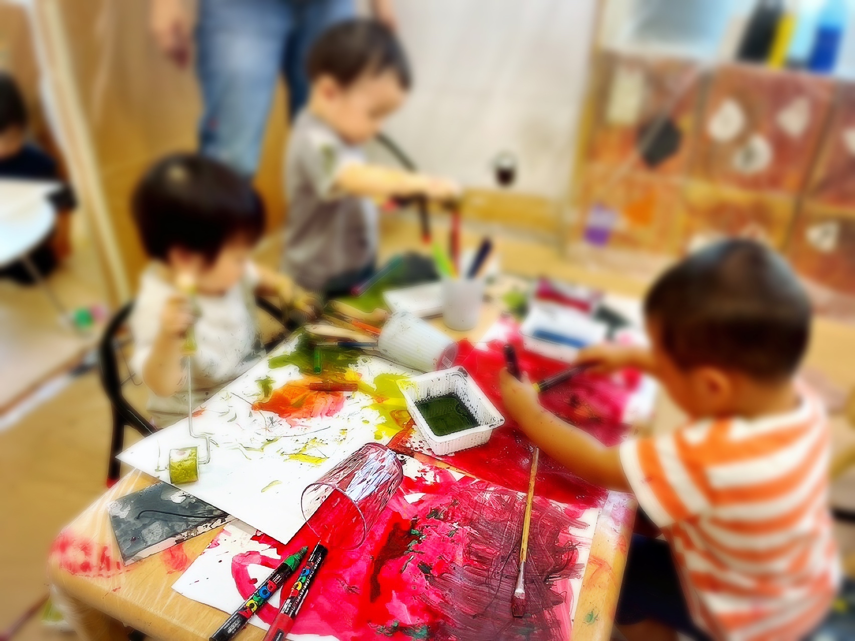 「絵の具で塗る」や「絵の具で描く」ではなく、「絵の具を体験する」貴重な機会。