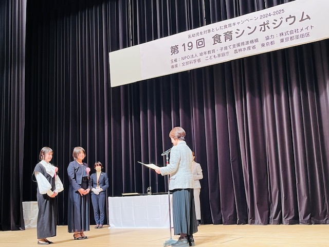 NPO法人幼年教育・子育て支援推進機構主催の「食育コンテスト」にて、優秀賞を受賞することができました。3歳児たちによる苗の購入、夏野菜の栽培、調理、野菜の実験、種取りなどのプロセスを「幼児期の終わりまでに育ってほしい10の姿」の観点から分析しました。