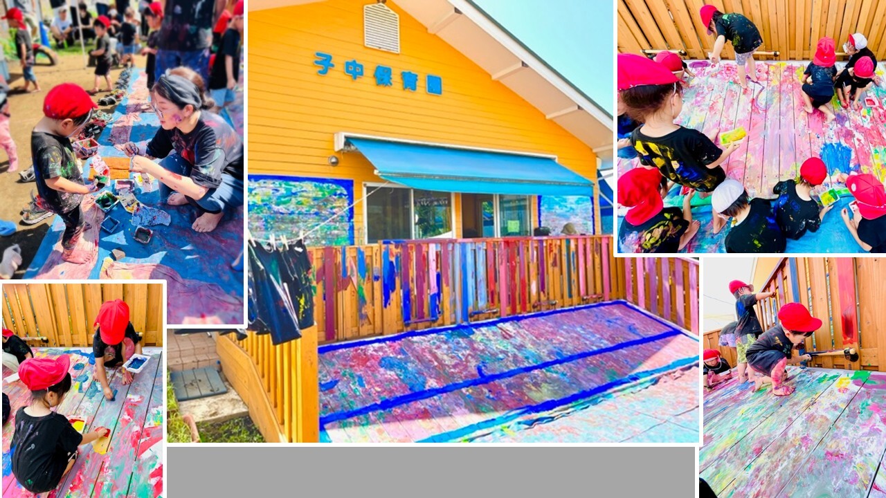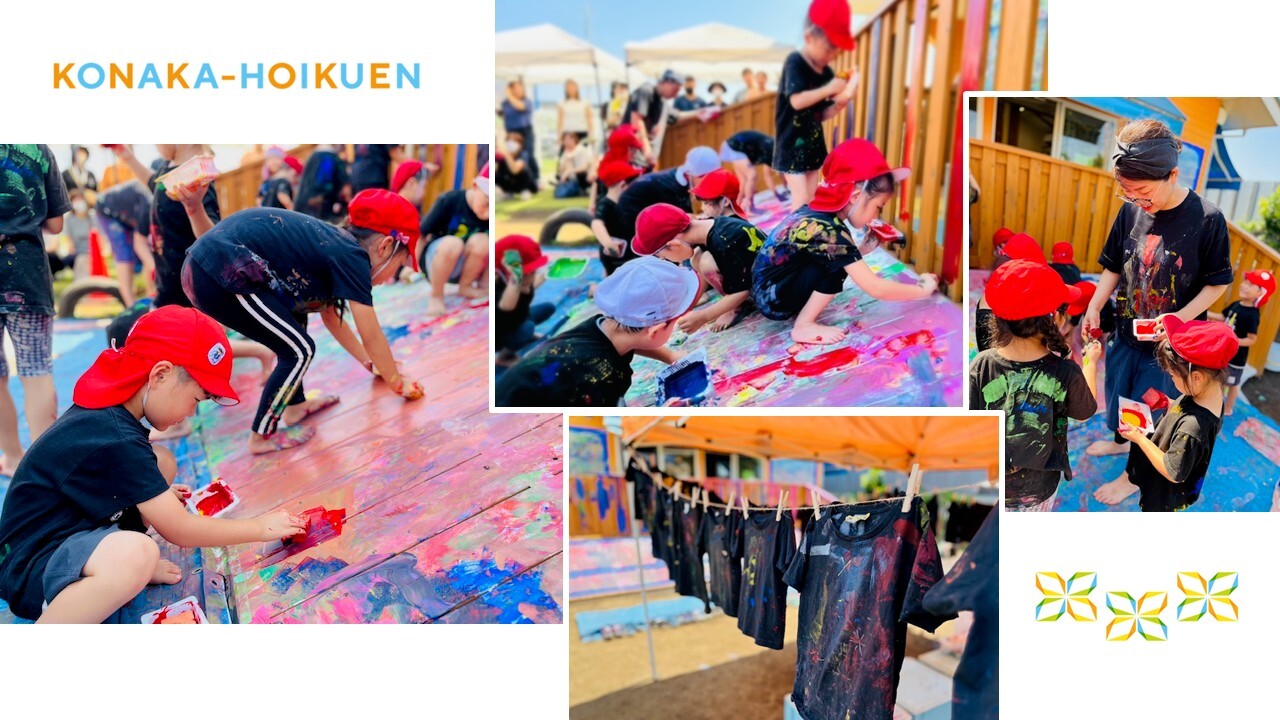 今年度も画家のせつはやとさんと、デザイナーの田代早苗さんと共に、子どもたちが絵の具の活動を楽しみました。
